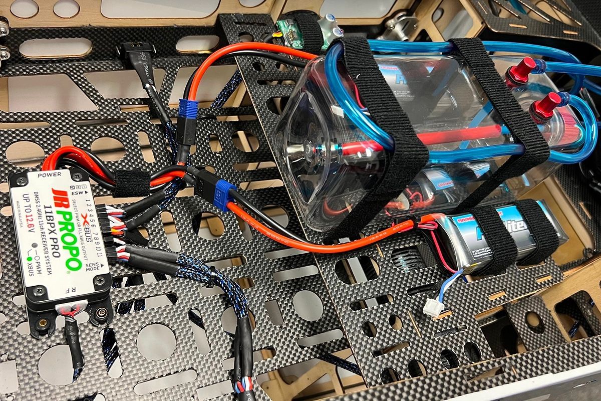 Pro ovládání modelu vyhoví nejméně devítikanálová počítačová RC souprava možnost přesného nastavení párových serv a naprogramování dvojích a exponenciálních výchylek ve správné velikosti je pro létání akrobacie klasické přesné i extrémní 3D zásadní.