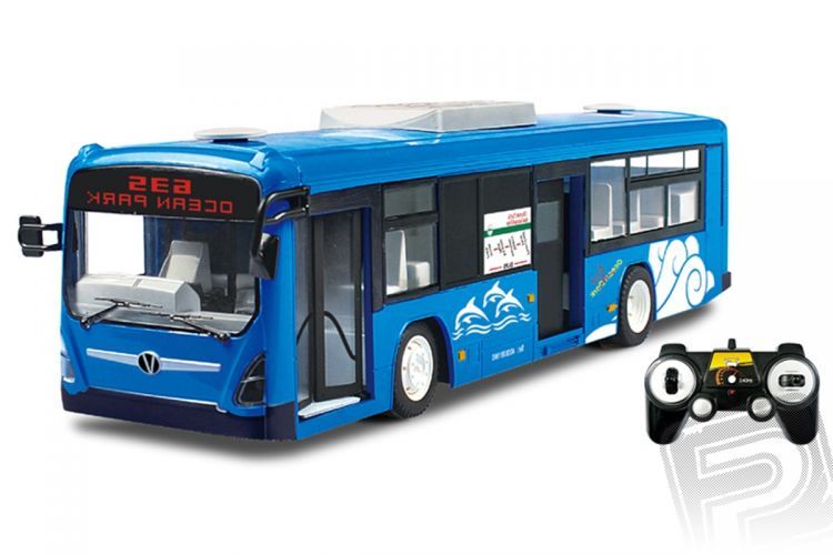 Model autobusu městské hromadné dopravy na dálkové ovládání. Disponuje simulovanými zvuky, dálkově otevíratelnými dveřmi, a funkčními světlomety. Rychlost 3,6 km/h, dosah vysílače 30m, modrá a červená varianta. Součástí balení je originální nabíječ a akumulátor.