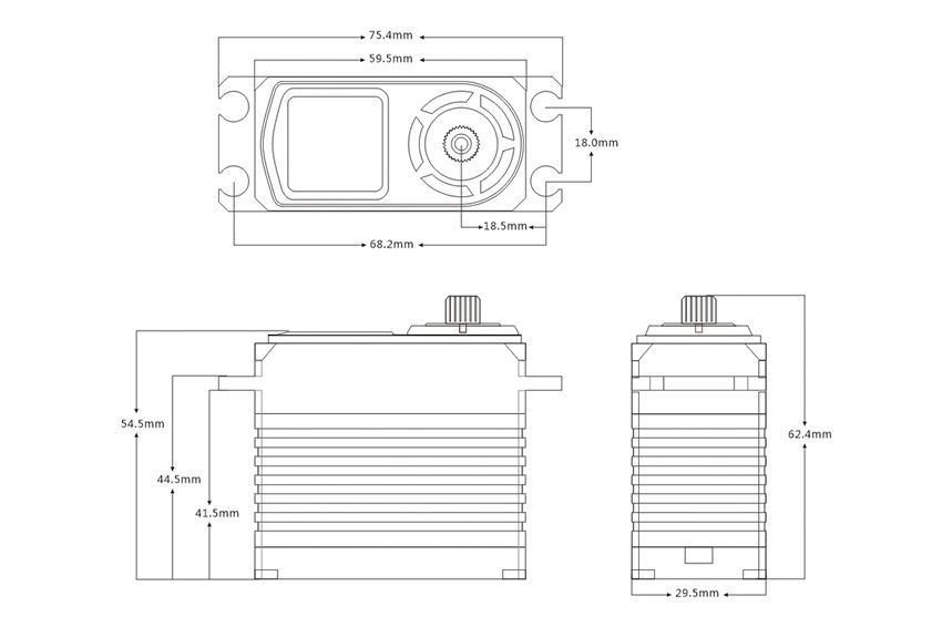 - Kroutící moment při zastavení (6,0 V): 90,0 kg.cm