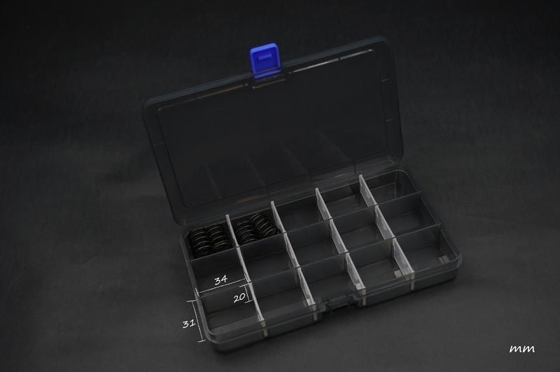 Box na díly 177x102x25 mm (15 přihrádek, vyjímatelné přepážky)