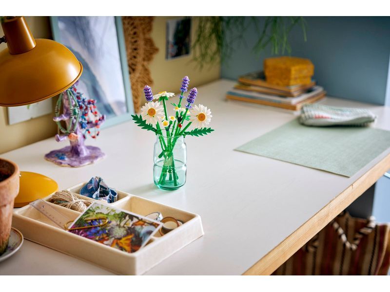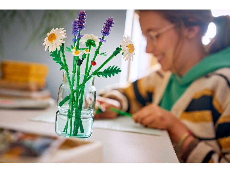 Tato drobná kytice LEGO tvoří perfektní rovnováhu mezi živou radostí a klidem. Pyšní se realistickým provedením květů a roztomilou beruškou pro štěstí, která sedí na jednom ze stonků levandule a zaručeně potěší každého malého stavitele. A když děti svůj květinový model LEGO dokončí, můžou si jej hrdě vystavit v pokojíčku nebo na stole, jako radostnou dekoraci, která nikdy neuvadne.