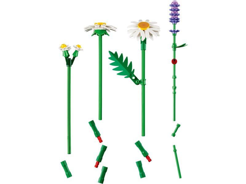 - KYTICE LEGO® Začínající květináři si užijí spoustu zábavy při stavění 3 velkých kopretin, 2 stonků s malými kopretinami, 3 uklidňujících levandulí a zářivě zelených stonků