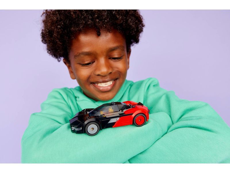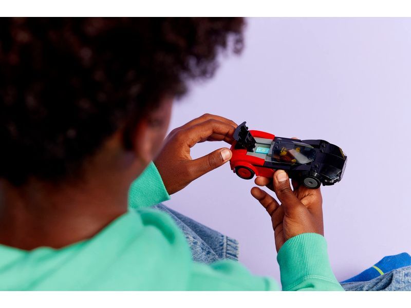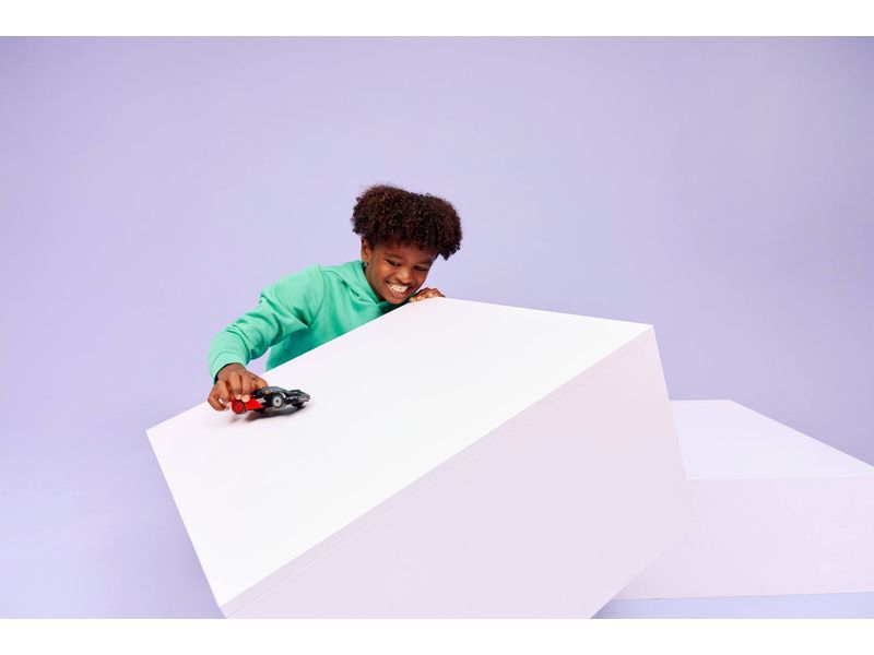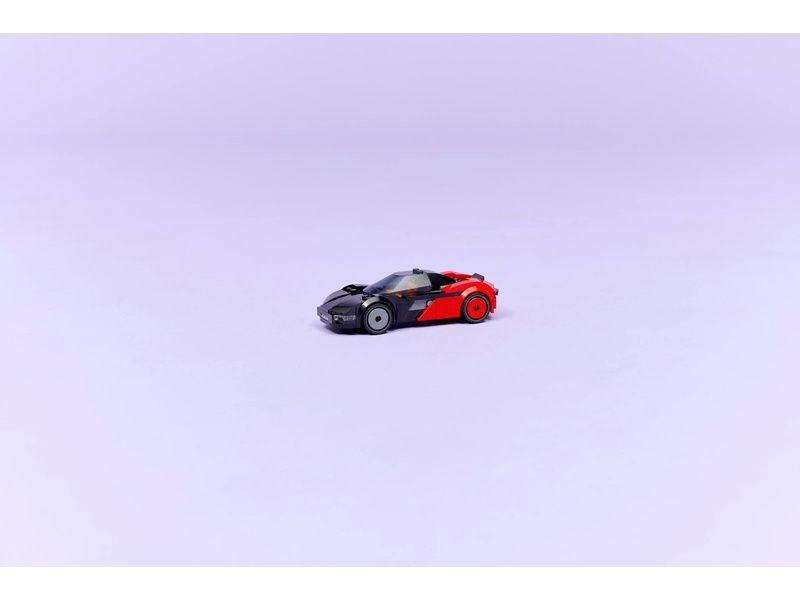 - JAKO SKUTEČNÉ AUTO Zvedněte zadní kapotu malého černo-červeného sportovního auta, abyste se dostali k baterii, posaďte minifigurku řidiče za volant, šlápněte na plyn a užijte si hodiny jízdy