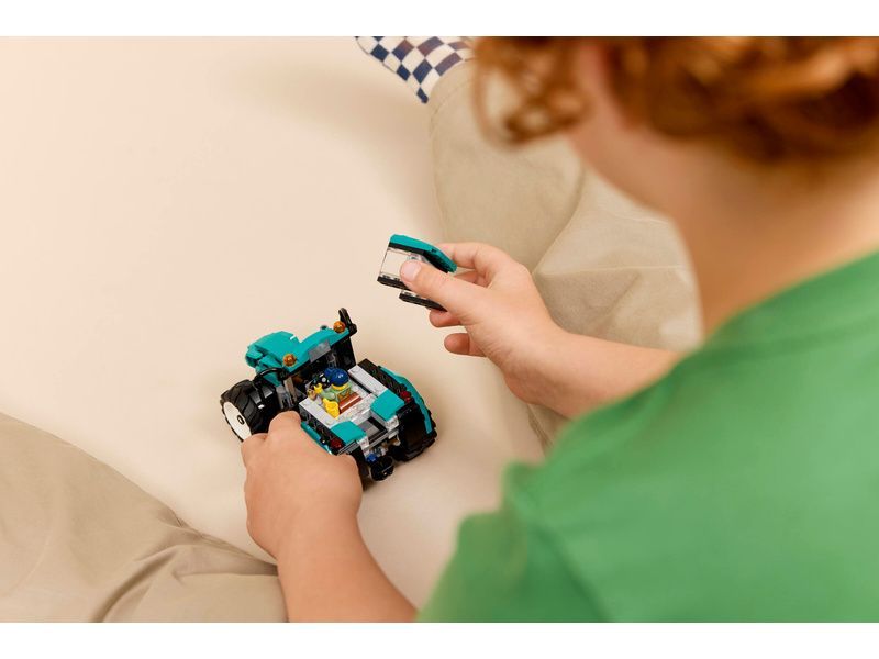 Stavebnice LEGO® City Traktor (60498) pro děti od 6 let naplno rozproudí dětskou fantazii. Propracované farmářské vozidlo se pyšní svěží modrozelenou barvou a 4 velkými gumovými pneumatikami. Malí stavitelé můžou odejmout střechu kabiny, usadit dovnitř minifigurku farmáře, otevřít kapotu, aby zkontrolovali motor, a vydat se na napínavá dobrodružství na venkově.