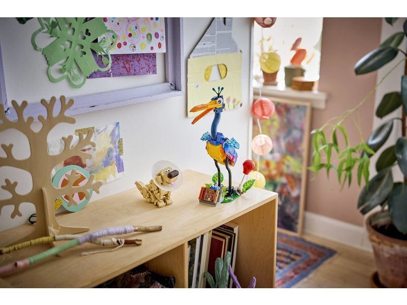 - DOPLŇKY MODELU Tato stavebnice LEGO® ǀ Disney obsahuje také podstavec pro Kevina s pohyblivými listy, červený balonek, Knihu dobrodružství a další doplňky