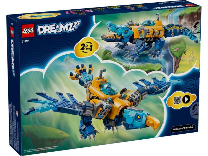 Se stavebnicí LEGO® DREAMZzz Krokodýlí ponorka (71512) mohou děti od 8 let popustit uzdu kreativitě. Nabízí hned 2 možnosti sestavení plné akce, díky nimž si malí snílci postaví krokodýlí ponorku nebo létajícího orla. Ponorka má dvojité vystřelovače, skrytý prostor a kokpit, do kterého se vejde minifigurka.
