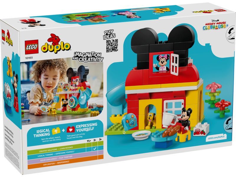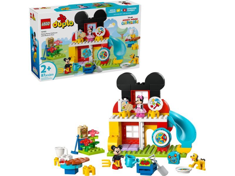Děti od 2 let se připojí k oblíbeným postavičkám ze světa Disney a pustí se do plnění zábavných úkolů se stavebnicí Mickeyho klubík, Minnie a Pluto (10465). Stavebnice obsahuje dvoupatrový dům se skluzavkou, výtvarnou dílnou, zahradou s hotelem pro hmyz, stoly, židle a speciální dveře pro Pluta. Nechybí postavičky LEGO ǀ Disney Mickey Mouse, Minnie Mouse a Pluto a kostka s motivem počítače Ouška.