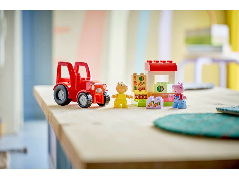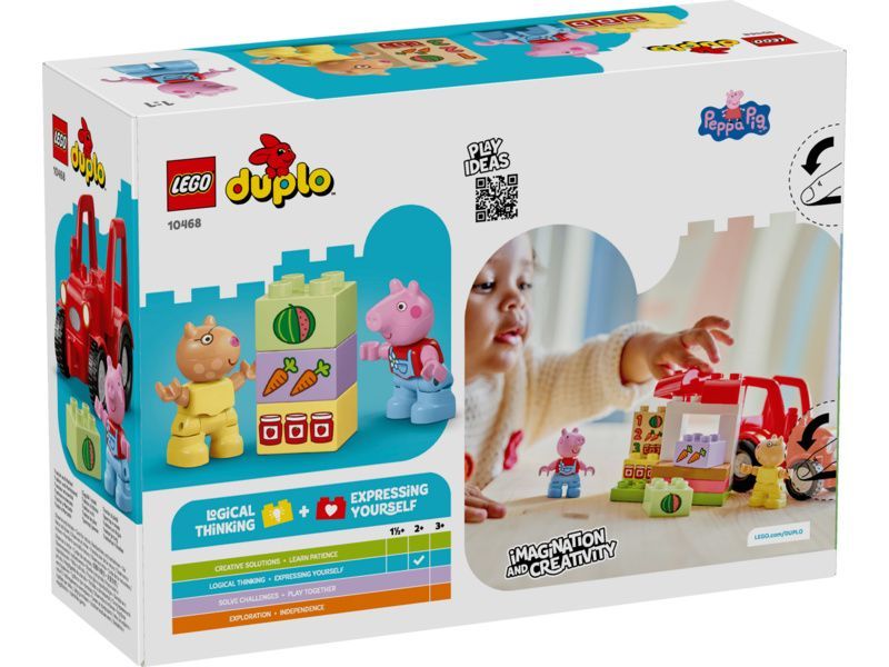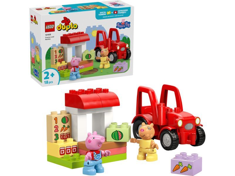 - HRAČKA PRASÁTKO PEPPA Batolata od 2 let si se stavebnicí LEGO® DUPLO® Prasátko Peppa Traktor a tržnice (10468) můžou připomenout scény ze svého oblíbeného seriálu a hrát na provozování farmářského obchodu