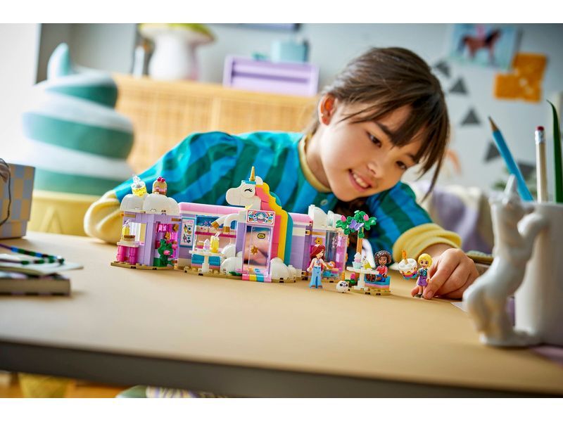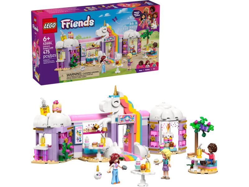 - STAVEBNICE KAVÁRNY S DUHOVÝM JEDNOROŽCEM Děti od 6 let si s propracovanou stavebnicí LEGO® Friends Snová kavárna s jednorožcem (42684) můžou hrát na majitele kavárny a užít si hraní se 3 minipanenkami a hračkami v podobě dortů pro kreativní hraní