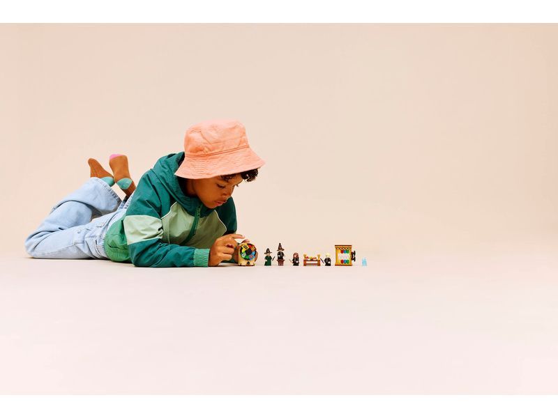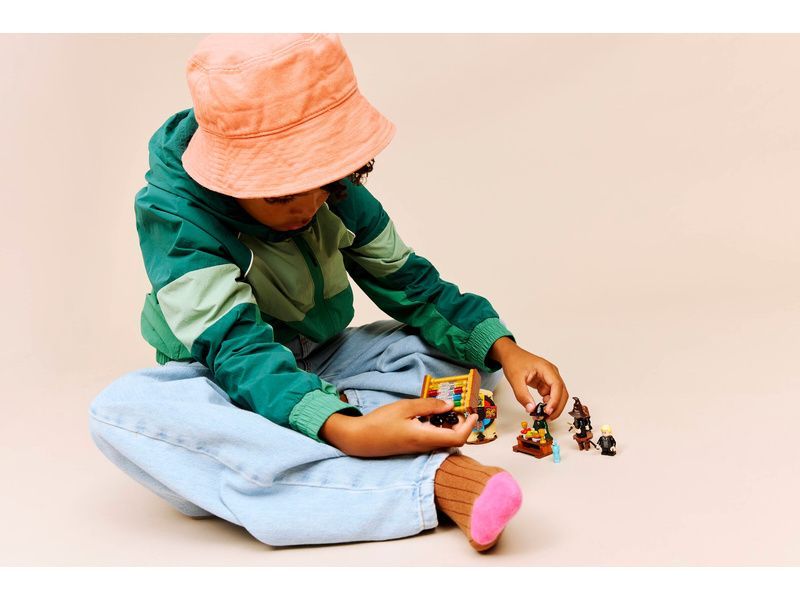 Připomeňte si ceremoniál s moudrým kloboukem v Bradavickém hradu z filmu Harry Potter a Kámen mudrců s touto stavebnicí LEGO® Harry Potter (76460) pro děti. Tato zábavná hračka Harry Potter pro holky, kluky a fandy od 7 let obsahuje 4 minifigurkyLEGO Harry Potter: Profesorku McGonagallovou, Harryho Pottera, Hermionu Grangerovou a Draca Malfoye. Nasaďte moudrý klobouk na hlavu jednotlivých studentů a otočte třídicím kolečkem, abyste zjistili, do které bradavické koleje budou zařazeni. Součástí stavebnice je také jídelní stůl a počitadlo bodů pro jednotlivé koleje pro ještě více herních možností.
