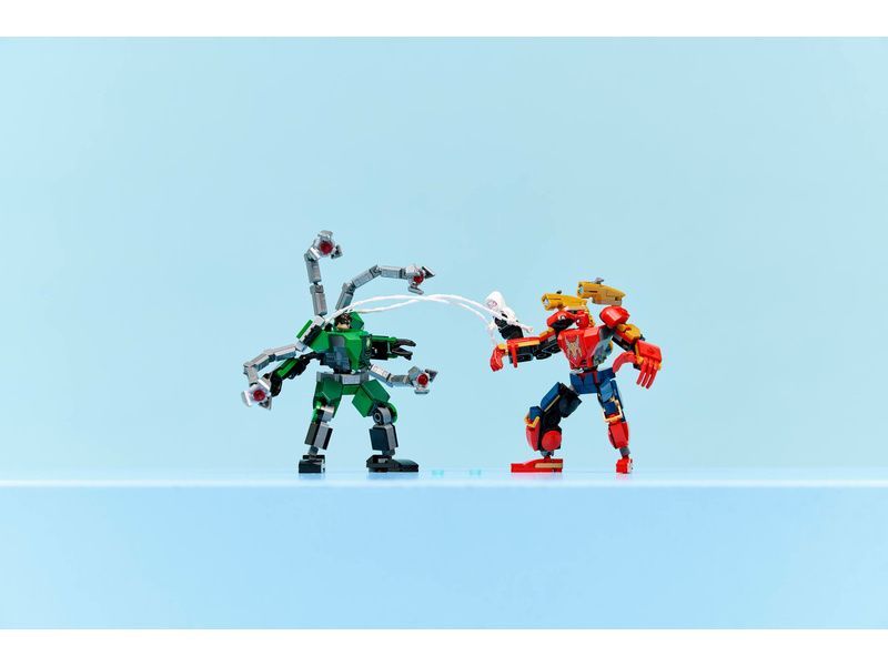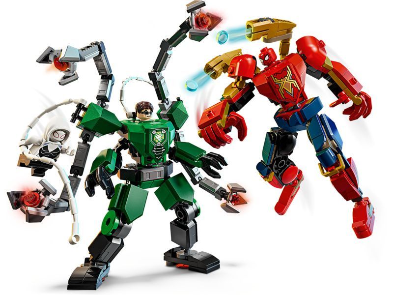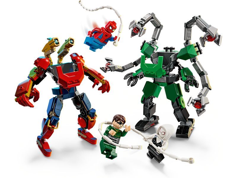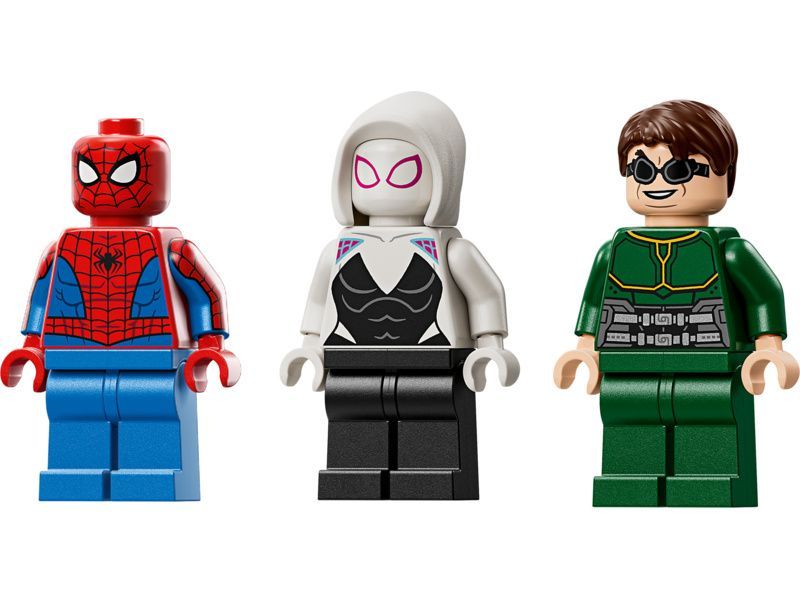 Oba roboti jsou pohybliví a umožňují dynamickou akci. Mají otevírací kokpity, do kterých se vejdou minifigurky pilotů. Robot Spider-Mana je navržený ve stylu Iron Spidera a má 2 pohyblivé vystřelovače ovládané tlačítky. Robot Doc Ocka má 4 pohyblivá chapadla. Součástí balení jsou také 2 pavučinová lana, která lze snadno připevnit k robotům a minifigurkám, a Ghost Spider má praky, které lze připevnit k trupu robota Doc Ocka.