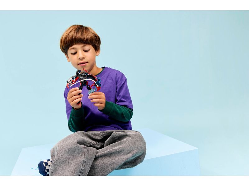 - AKČNÍ DOPLŇKY Stavebnice obsahuje silný trojitý vystřelovač, pavučinové lano a ostré výbušné střely připevněné k pažím robota Milese Moralese, které společně s minifigurkami inspirují děti ke hře plné kreativity
