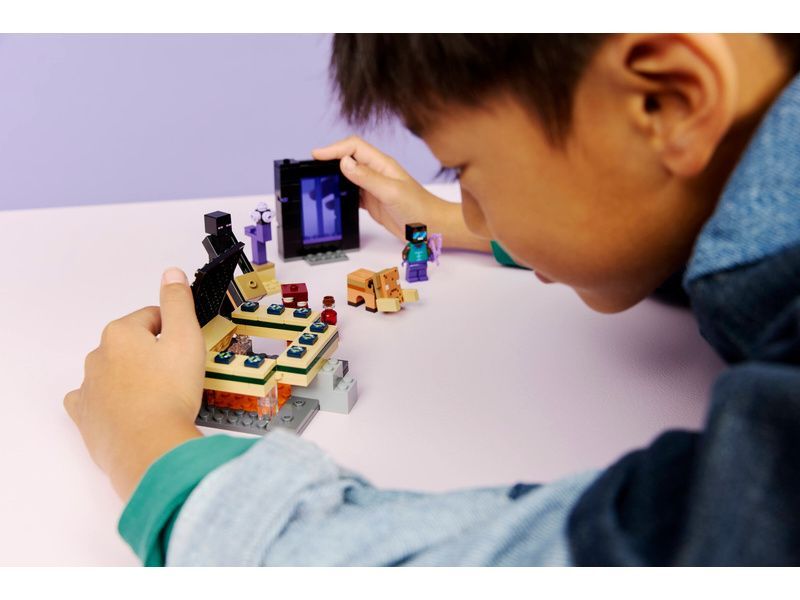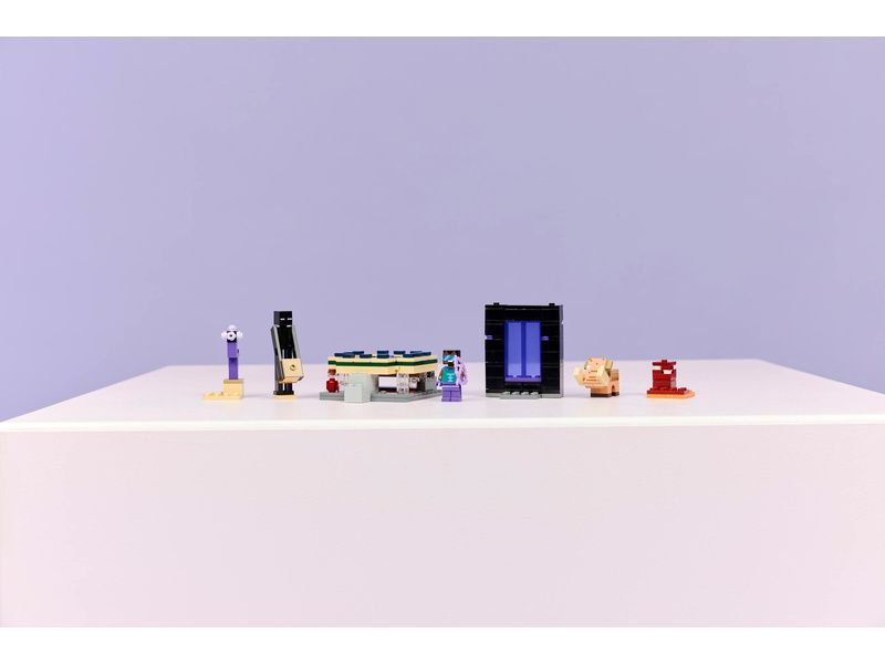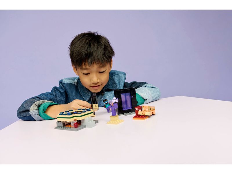 Tato stavebnice LEGO® Minecraft obsahuje portál do Endu a portál do Netheru s funkcemi pro přístup k malým modelům jednotlivých biomů. Autentické doplňky, včetně kouzelného luku a léčivého lektvaru, inspirují k nekonečným kreativním dobrodružstvím se známými scénami a postavami z Minecraftu.