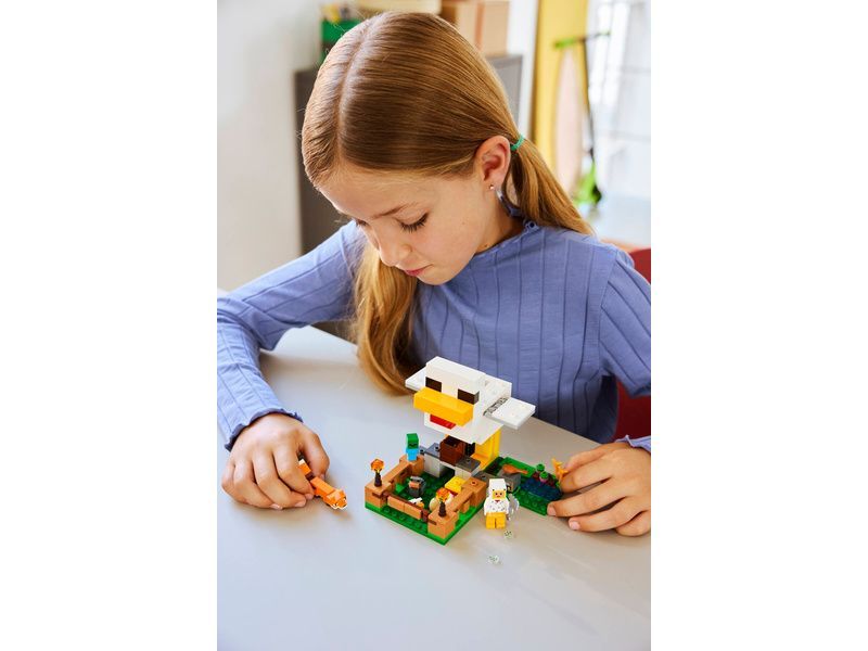 - STAVEBNICE NA MOTIVY VIDEOHRY Užijte si s touto stavebnicí LEGO® Minecraft® hodiny hraní na péči o slepice, prozkoumejte řadu zábavných funkcí v kurníku a braňte se před malým zombie, které se snaží svézt na kuřeti