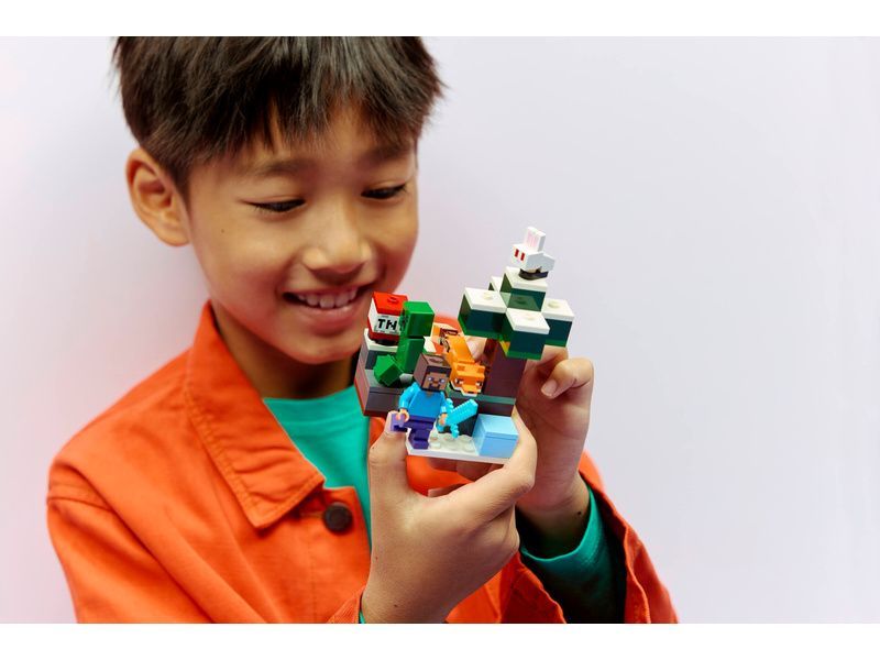- STEVE A DOBRODRUŽSTVÍ V TAJZE Vrhněte se do soubojů, hledejte poklady a užijte si výbušnou zábavu s touto stavebnicí LEGO® Minecraft® (21583) pro kluky, holky a děti od 6 let, kteří milují hračky s motivem videoher