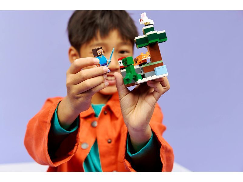- 4 POSTAVY LEGO® MINECRAFT® Vydejte se na dobrodružství v tajze s minifigurkou Stevea, Creeperem a 2 figurkami zvířat z Minecraftu, liškou a zajíčkem.