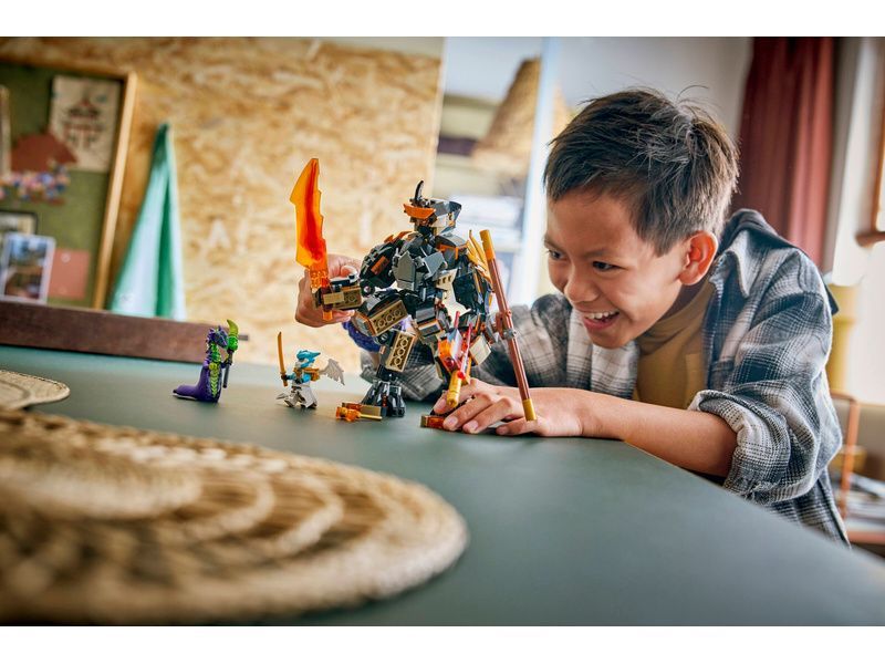 - 3 MINIFIGURKY NINJAGO® Tato stavebnice LEGO® s robotem obsahuje Colea s kladivem, Zanea v dračí podobě s mečem a kyselinovou příšeru s holí, díky kterým si fanoušci přehrají scény boje dobra proti zlu
