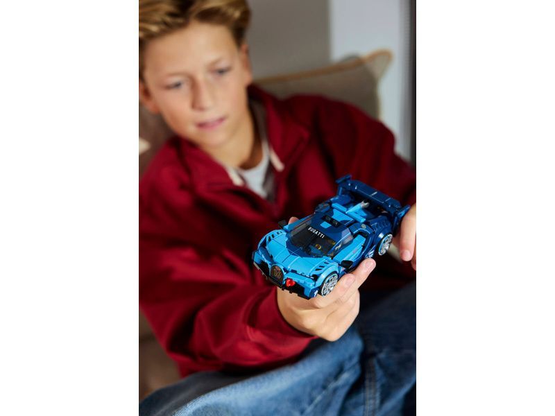 Model vozu Bugatti se pyšní detaily inspirovanými vozem navrženým automobilkou Bugatti pro videohru Gran Gran Turismo z roku 2015. Patří mezi ně přední mřížka ve tvaru podkovy, zadní křídlo, charakteristických 8 světlometů, střešní ploutev a široké pneumatiky s potiskem Michelin. Součástí stavebnice je také minifigurka v oblečení Bugatti, kterou lze umístit do kokpitu a užít si s ní závody.