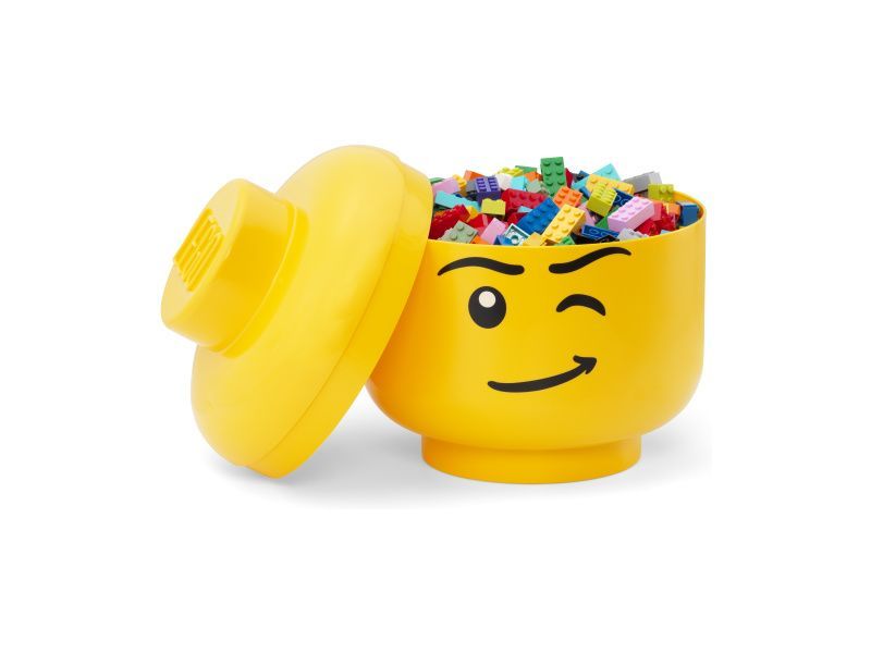 LEGO úložný box na hračky ve tvaru hlavy poslouží jako stylový prostor pro ukládání všech vašich drobností. Těmito plastovými boxy opravdu nadchnete každého milovníka barevných LEGO kostiček. Po zvednutí horní části odkryjete úložný prostor.