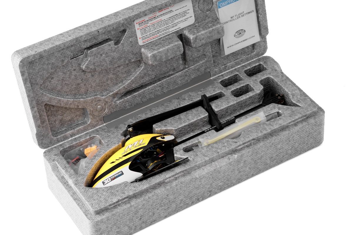 ARF set vrtulníku obsahuje: 100% sestavený a k letu připravený model M1 V1, pohonný akumulátor LiPo 7,4 V 350 mAh 50C, imbusový šroubovák, plochý klíč, nabíjecí kabel, pevnou krabici z pěnového EPP s odklopným víkem pro bezpečné přepravování a skladování modelu, návod k obsluze modelu a nastavování řídící jednotky.