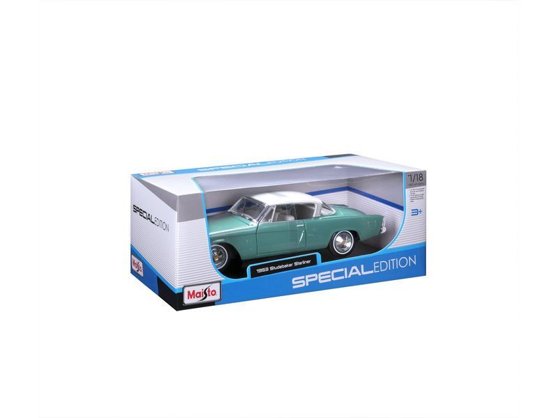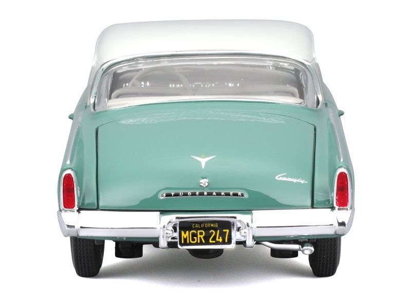 Kovový model auta 1:18 Maisto 31651 Studebaker Starliner 1953 nejen pro sběratele. Model je v detailním provedení na plastovém podstavci. Barva modelu je zelená a je přibližně 26 cm velký.