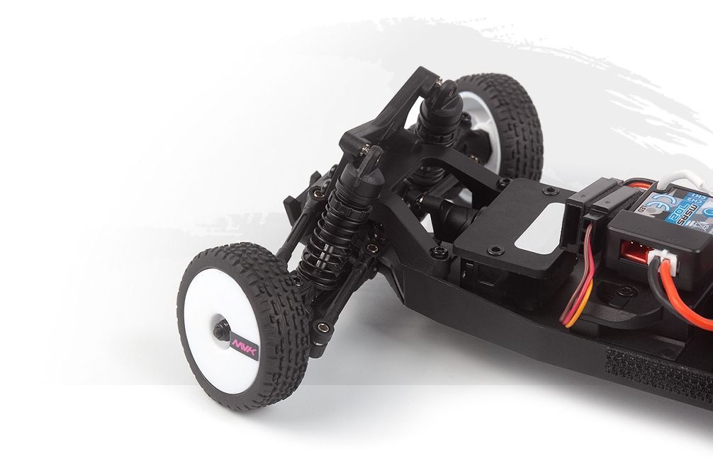 2v1 jednotka regulátoru/přijímače MSRS-702 a stejnosměrný motor MS-030 zajišťují jednoduchost a spolehlivost, zatímco rychle přístupný držák akumulátoru umožňuje rychlé a bezproblémové zastávky v boxech. Kompletně připraveno k provozu s rádiem MTX-702, 7,4V 350mAh LiPo pohonným akumulátorem a USB nabíječem v balení, stačí jen nabít a můžete vyrazit na svůj první závod.