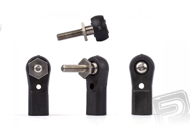 Nylonový kulový čep pro velké modely letadel a modely lodí nebo aut poháněné benzinovým motorem. Je téměř nemožné rukou vycvaknout kuličku z nylonového pouzdra, ale přesto je pohyb v něm velmi hladký. Poniklovaná kulička s vnějším průměrem 6mm. M3 spojova