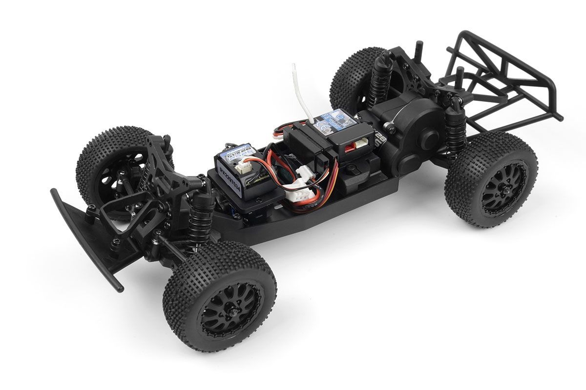 Tento terénní model Short Course Trucku v měřítku 1:24 v sobě spojuje špičkovou závodní technologii s kompaktním podvozkem, se kterým můžete jezdit téměř kdekoli od provizorních halových okruhů až po nerovné dráhy na zahradě.