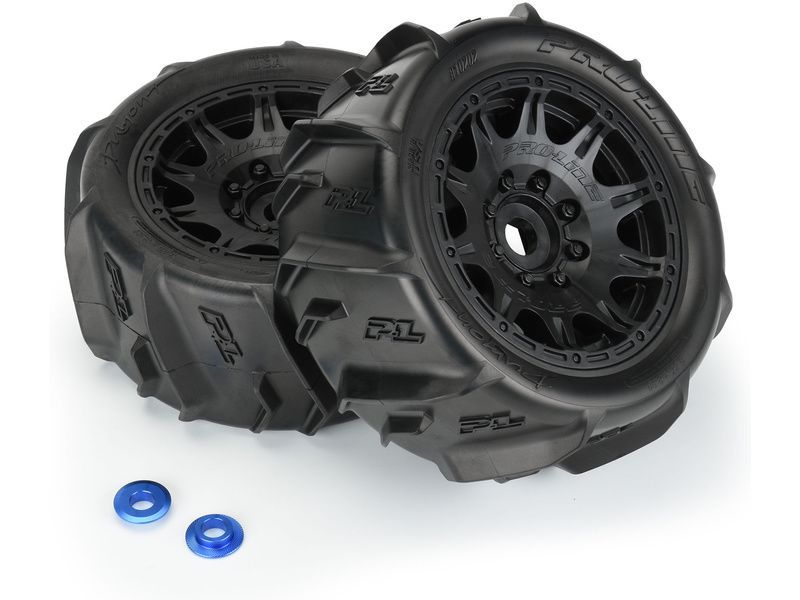 Balení obsahuje 2ks kompletních kol, 2x hliníkovou vymezovací podložku pro model X-Maxx.