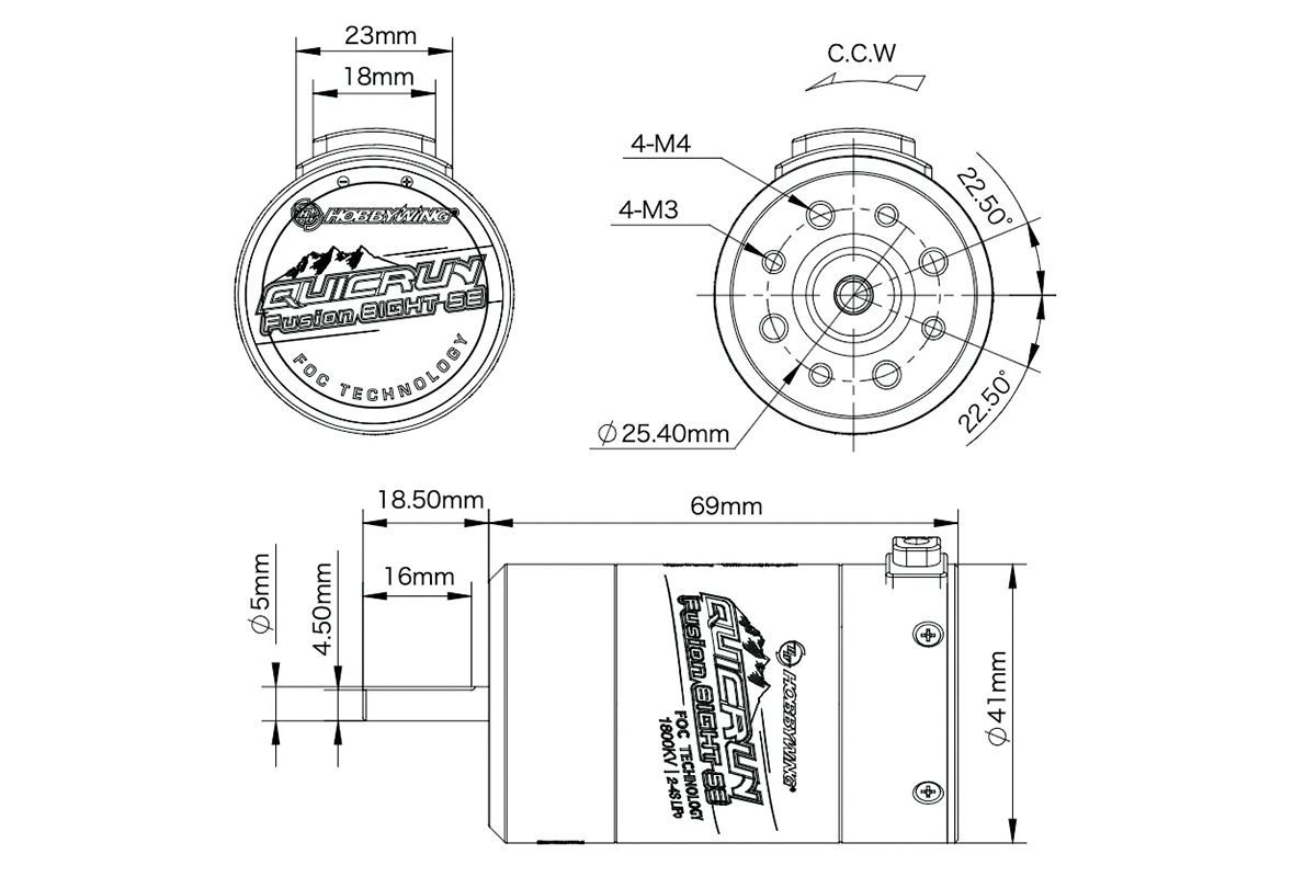 Špičkové combo QuicRun Fusion 8IGHT SE 1800kV s integrovaným regulátorem 60/200A speciálně vyvinuté pro crawlery 1:8. Napájení 2-4S Lipol nebo 6-12S NiMH. BEC 4A s nastavitelným napětím 6V/7,4V. Průměr motoru 41mm, délka 69mm. Průměr hřídele 5mm a délka 18,5mm. Nastavení přes LED/LCD programovací box PRO. Hmotnost vč. kabelů 326,5g.