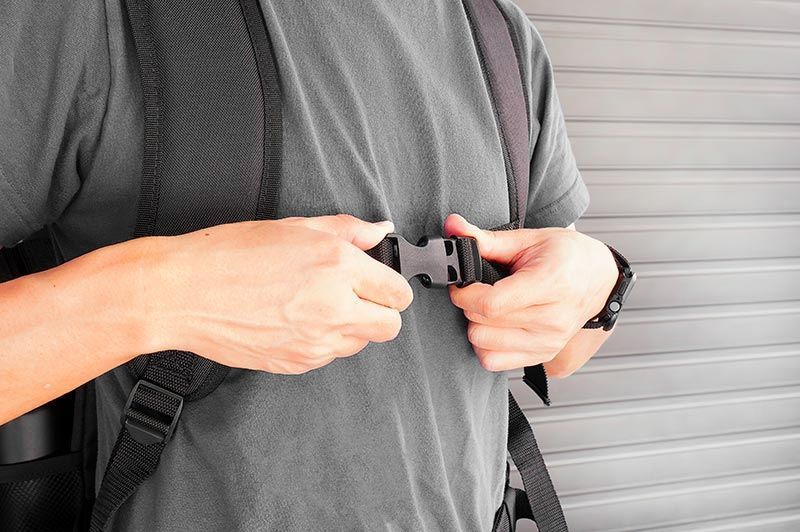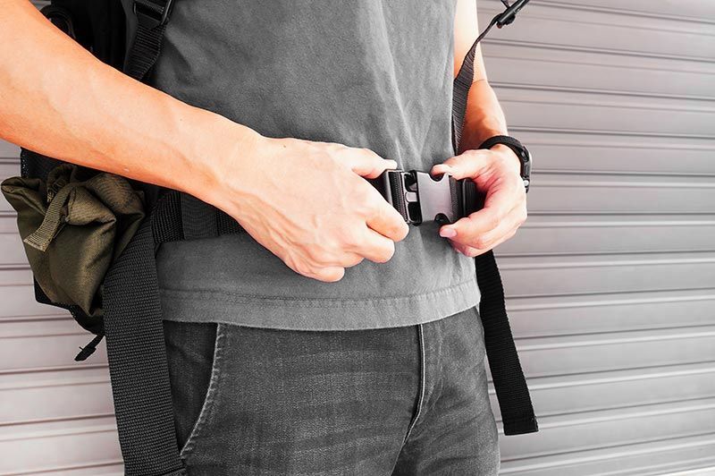 - Nastavitelné hrudní a bederní popruhy s rychloupínacími sponami pomáhají přenést váhu z ramen na boky.