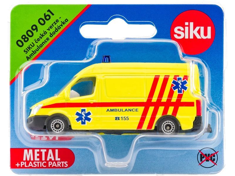 Kovový model dodávky ambulance s českými nápisy v měřítku 1:50. Model má čirá okna, zpracovaný interiér, maketu majáčku a plastová kola. Vhodné pro hraní i sběratelství. Kvalitní zpracování z kovu a plastu. Baleno v blistru.