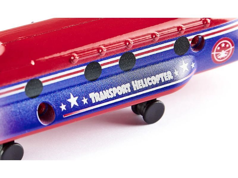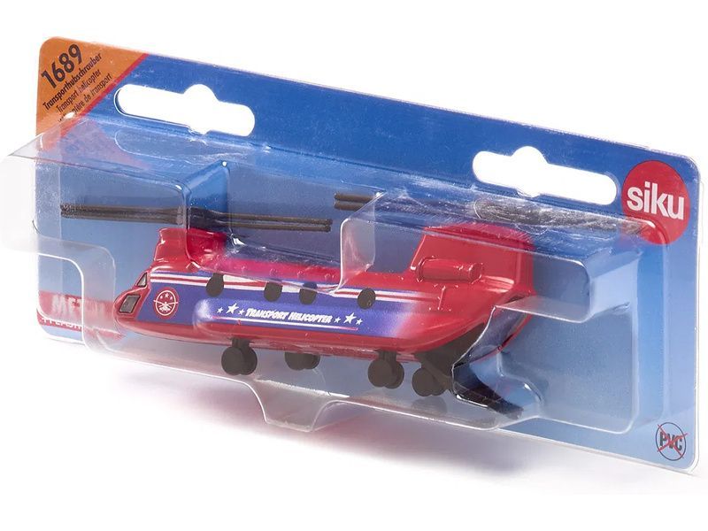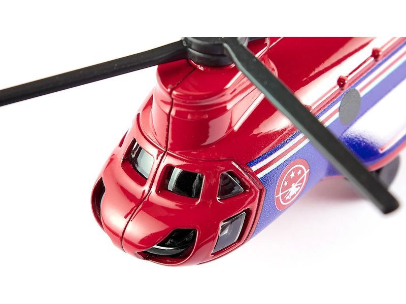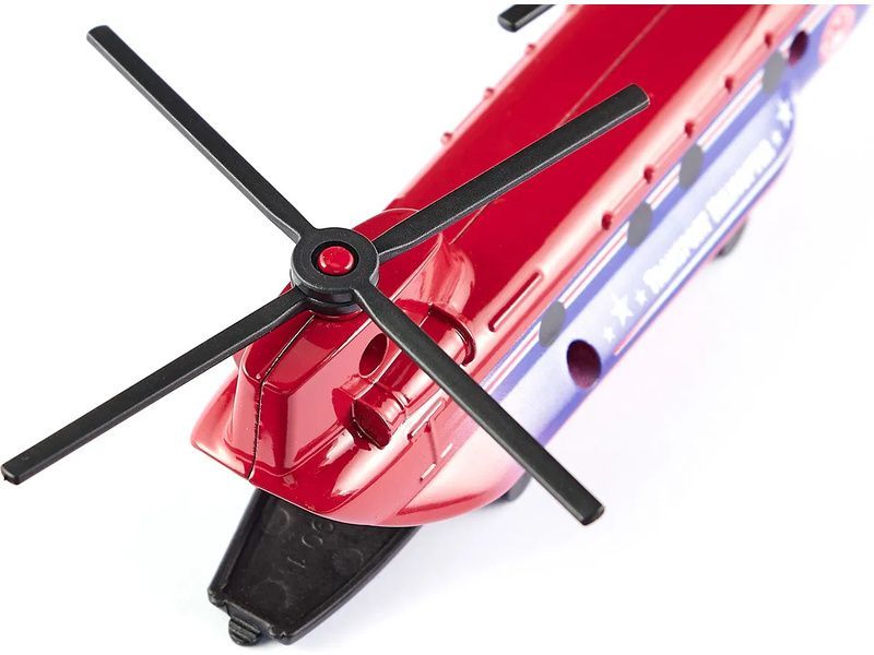 Kovový model dvourotorového dopravního vrtulník od značky Siku, délka přibližně 17 cm. Vrtulník obsahuje zadní otevírací dveře nákladního prostoru, kola pro pojíždění, čirá okna a vrtule, které lze složit k sobě. Vhodné pro hraní i sběratelství. Kvalitní zpracování z kovu a plastu. Baleno v blistru.
