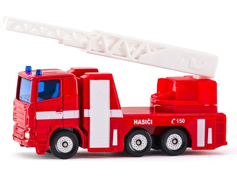 Kovový model hasičského auta s žebříkem s českými nápisy v měřítku 1:50. Hasičský žebřík lze zdvihnout, vysunout a otáčet s ním. Model má plastové pneumatiky a tažné zařízení. Vhodné pro hraní i sběratelství. Kvalitní zpracování z kovu a plastu. Baleno v blistru.