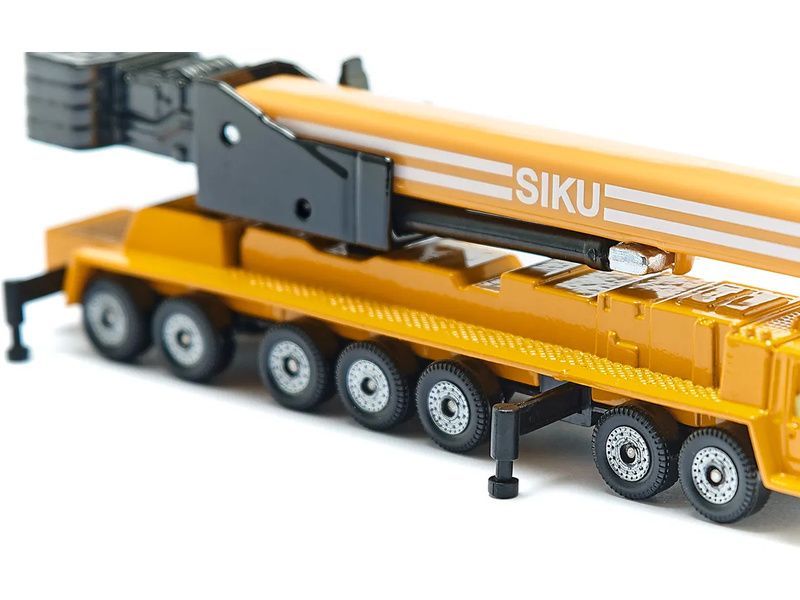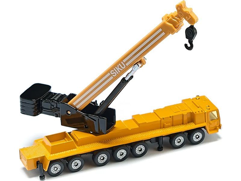 Kovový model těžkého autojeřábu od značky Siku, délka přibližně 15 cm. Autojeřáb je vybaven gumovými pneumatikami, čirými okny, vysouvacími patkami a otočným částečně vysouvacím ramenem. Vhodné pro hraní i sběratelství. Kvalitní zpracování z kovu a plastu. Baleno v blistru.
