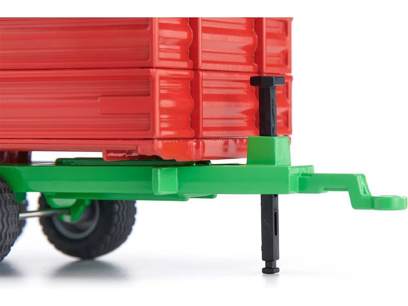 Kovový model přívěsu v měřítku 1:32. Korbu přívěsu lze zvednout pro vysypání nákladu, zadní dveře jsou výklopné, obsažena je výsuvná stojka, kola jsou gumová, bočnice lze snížit. Určeno pro zapojení k modelů Siku Farmer 1:32 s tažným zařízením. Vhodné pro hraní i sběratelství. Kvalitní zpracování z kovu a plastu.