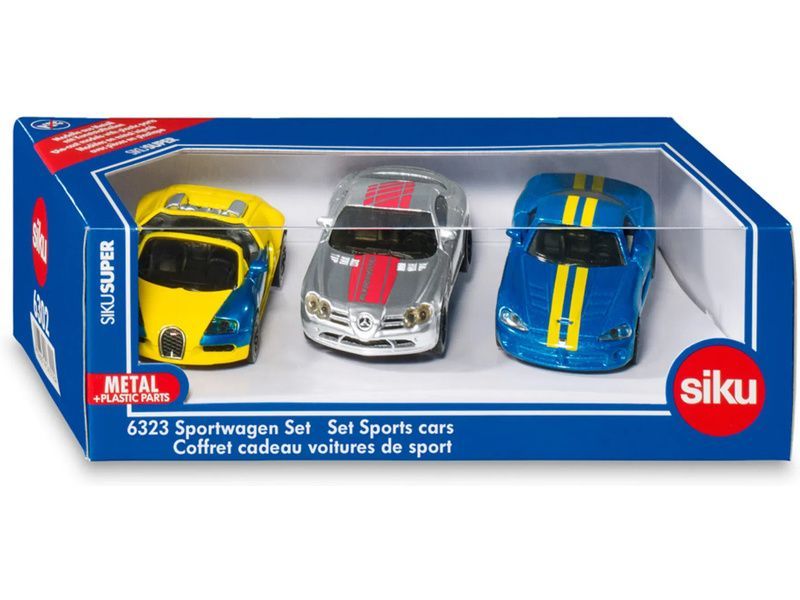 Sada kovový modelů aut Bugatti Veyron, Mercedes-Benz McLaren SLS a Dodge Viper od značky Siku. Modely mají čirá okna, zpracovaný interiér a u modelu Dodge Viper lze otevřít dveře. Vhodné pro hraní i sběratelství. Kvalitní zpracování z kovu a plastu.