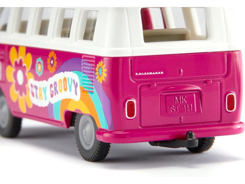 Kovový model minivanu Volkswagen T1 v provedení Samba v měřítku 1:50. Legendární model z 50. let, oblíbený v komunitě hippies, jako model s detailním zpracováním a otevíracími dveřmi na pravé straně. Vhodné pro hraní i sběratelství. Kvalitní zpracování z kovu a plastu.