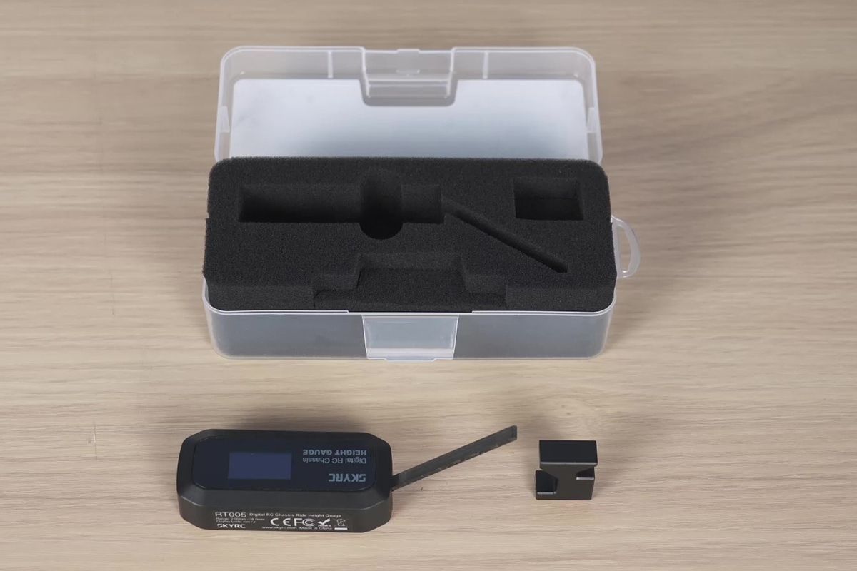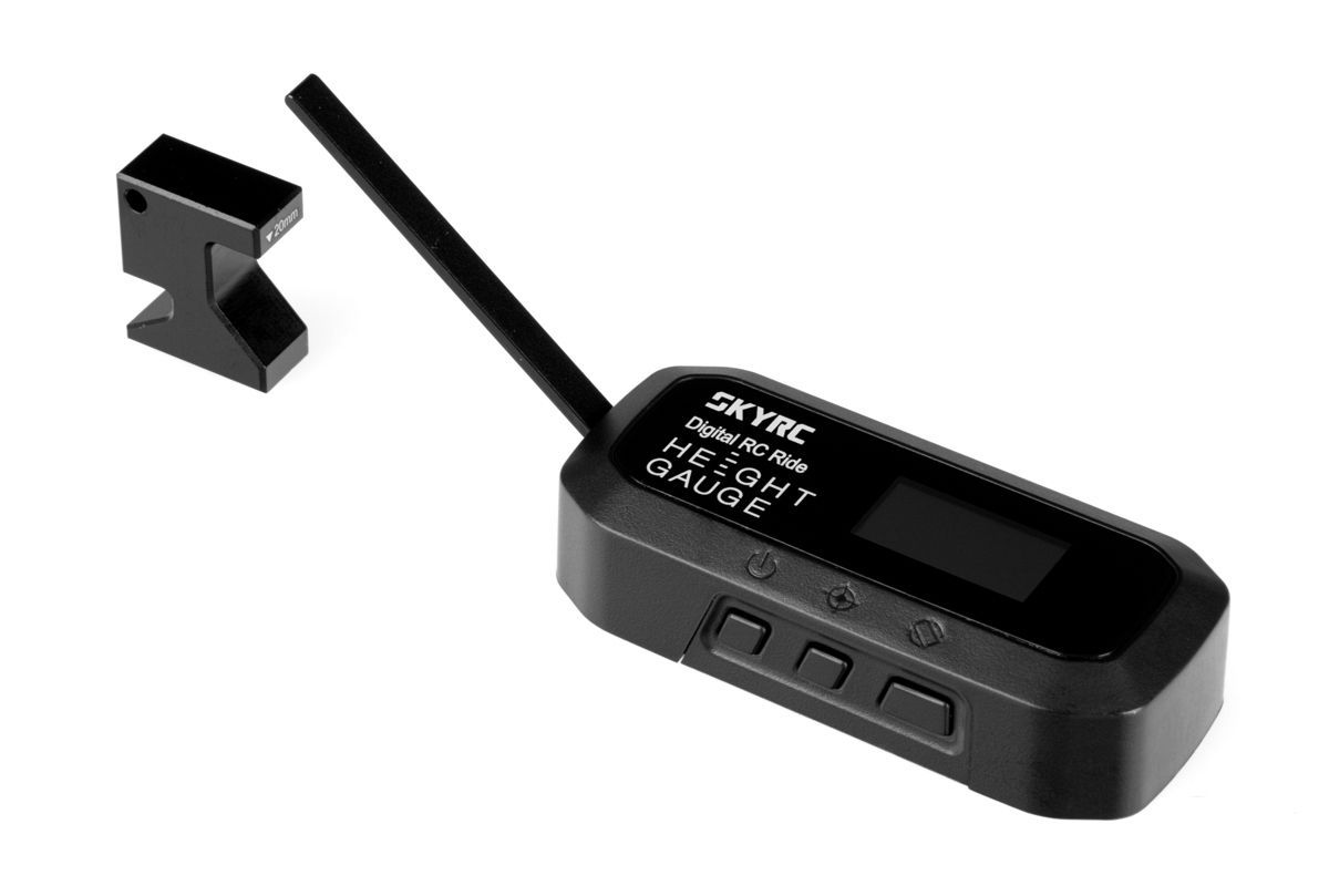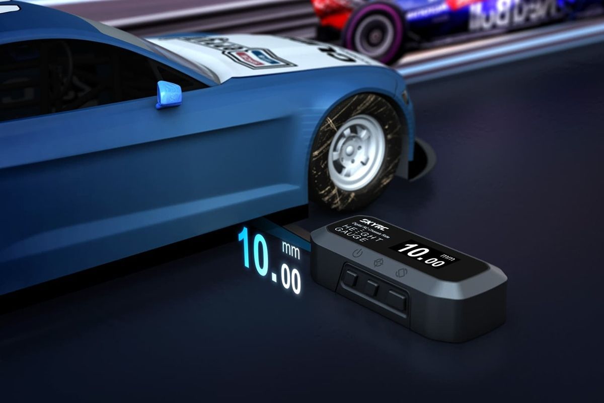 Digitální měřič světlé výšky je určen pro přesné a reprodukovatelné měření světlé výšky podvozků RC aut v rozsahu 2-38 mm. Vyhovuje pro RC auta od 1:24 po 1:8; poskytuje digitální údaj pro usnadnění nastavování podvozku, tlumičů a předstartovní přípravu. Napájení 1x AAA baterie.