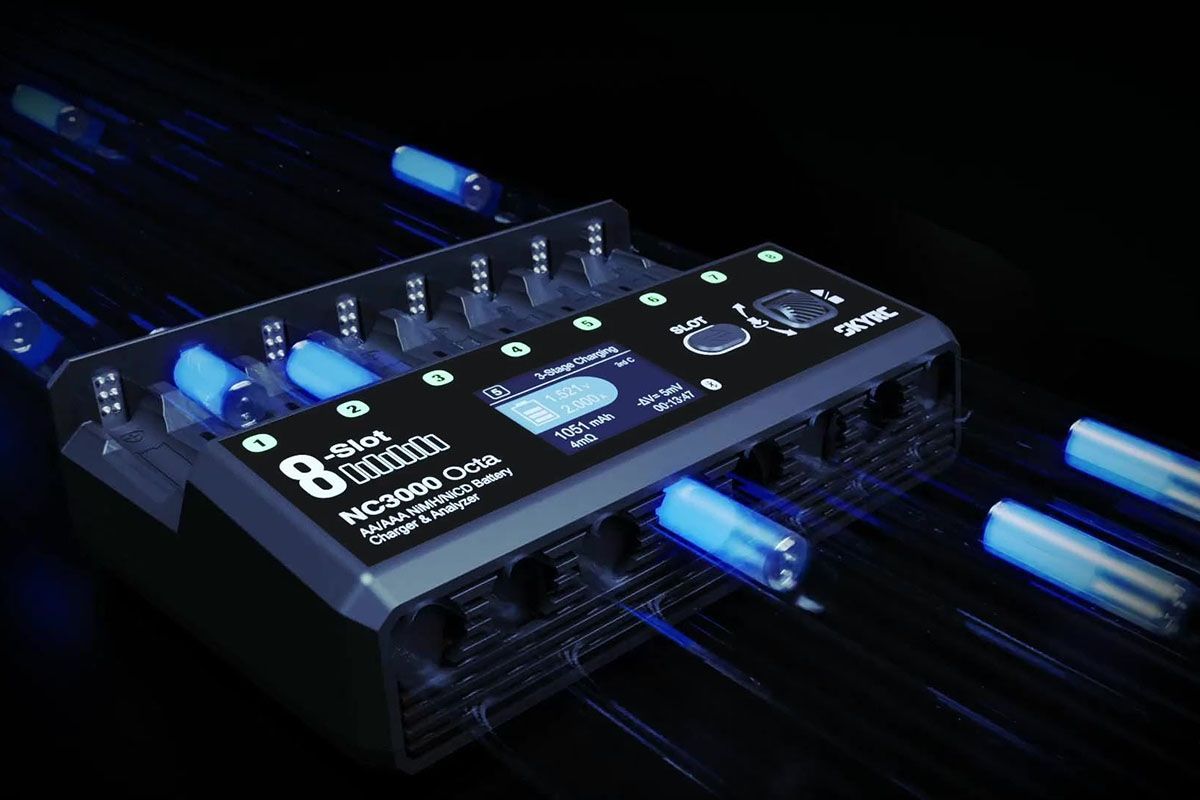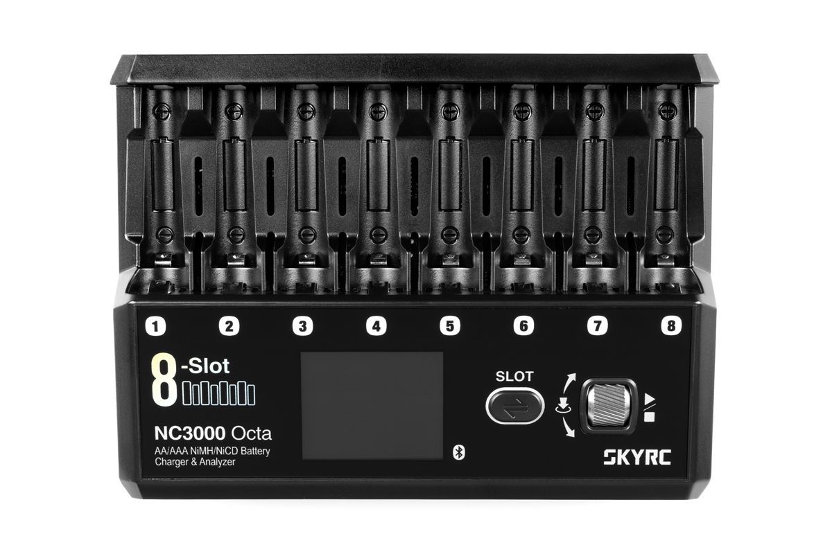 NC3000 Octa umožňuje současně a přitom nezávisle - nabíjet nebo vybíjet až osm různých tužkových nebo mikrotužkových akumulátorů. Pokud nabíjíte osm stejných akumulátorů, stačí parametry nastavit pro jeden kanál a potom jedním stiskem tlačítka zvolit simultánní nabíjení se stejnými parametry ve všech kanálech. Parametry probíhajícího procesu (nabíjecí/vybíjecí proud, nabitý/vybitý náboj, napětí akumulátoru, vnitřní odpor) jsou průběžně zobrazovány pro všechny kanály na LCD displeji.
