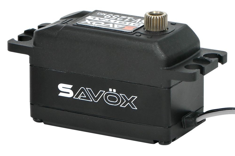 Savöx SV-1259MG je výkonné nízkoprofilové servo pro závody 1/10 nebo modely s omezeným prostorem.