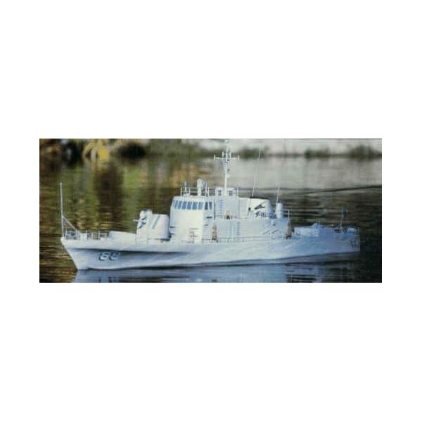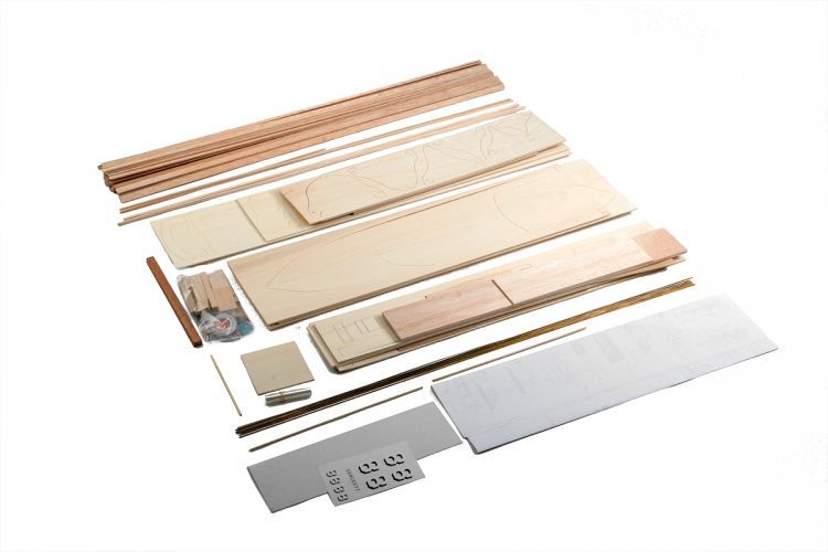 Stavebnice rychlého dělového člunu 1295mm v rozsypu pro pokročilé. Dřevěný plaňkovaný trup, překližkové a balsové díly, pro pohon 2 motory řady 500.