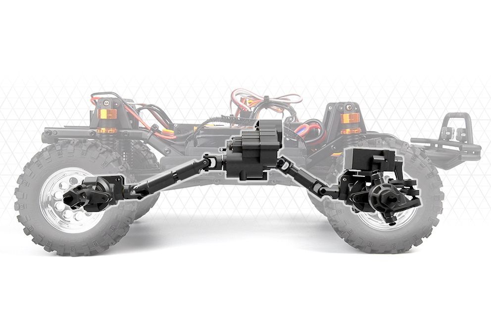 Nízký převod se může pochlubit působivým převodovým poměrem 81,44:1, který poskytuje výjimečné schopnosti při pomalém průchodu na úzkých, technických stezkách a překážkách. A když na rovném, otevřeném úseku potřebujete přidat na rychlosti - nebo prostě jen potřebujete vysoký výkon, abyste se dostali do stoupání - stačí na vysílači přeřadit na vysoký převod, čímž získáte převodový poměr 20,36:1, který vám nabídne pořádnou rychlost.