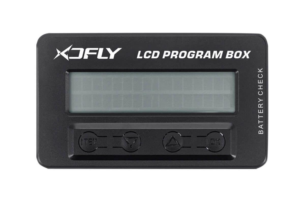 Multifunkční LCD programovací box pro regulátory vybraných řad XDFly slouží ke snadnému a rychlému programování regulátorů - doma na stole" stejně jako na letišti. Kromě toho může sloužit jako servotester, umí také měřit šířku a frekvenci signálových impulsů např. na výstupu z přijímače. Vybaven je také vstupem umožňujícím měřit celkové napětí a napětí jednotlivých článků lithiových akumulátorových sad 2-8S.